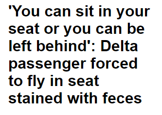 Well, this would never happen – which is pretty compelling. https://www.yahoo.com/lifestyle/can-sit-can-stay-behind-delta-passenger-forced-fly-seat-stained-feces-224107240.html Share this: Click to share on X (Opens in new window) X Click to share on Facebook (Opens in new window) Facebook Like Loading...